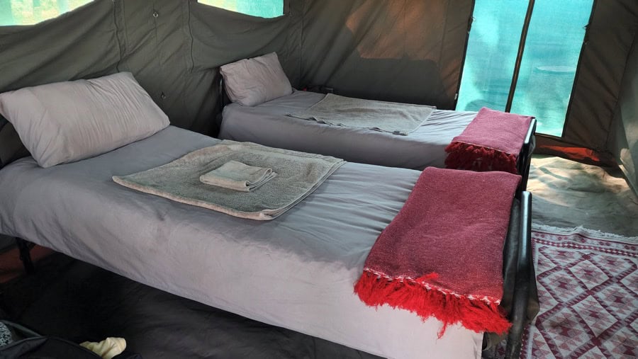All tents are furnished with bedding (mattress, pillow and sheets, duvet, blankets and towels) and set up bush showers and toilets.